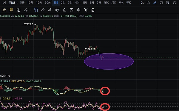 大饼。凌晨试探6.4K承压回撤,今日白盘阴跌不止,索性6.2关口直接击穿,以太方面连日给到的强势反抽,今天也是联动大饼重重失守,而伴随香港ETF的即将问世,本轮下跌给连日以来的稳固带来压力,技术形态各方面背离严重,无疑高位出货从而吸引更多接盘,今晚操作上,李隆建议先迎合空头,在大盘大锤还未稳定流入之前,主思维还是逢高做空更为稳妥(吸收教训),目前小时图中轨承压凝重,附图方面依旧处于死叉结构,晚间上方继续关注6.3K的承压防守,而下方短线抄底的低点需放在6/5.8K才能小试牛刀,连日以来风浪太大,希望大家参考李隆进场切记做好分批风控计划。