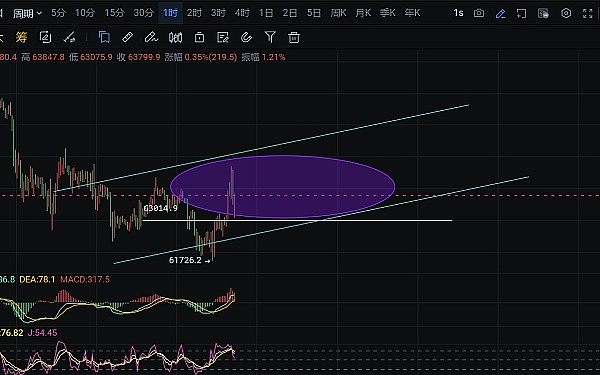 回踩63200-63500附近分批多,目标64000-65000附近