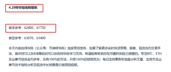 如果价格进入了下降通道的话,大家就需要关注是否在通道上轨形成长下影线从而支撑下降通道的上轨。目前在短期师爷会以最大下行目标63000为重要关卡,如果价格在跌破这个关卡之后师爷就会重新考虑策略。