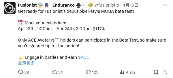 近日,知名Web3游戏开发商在社交网络官宣持有 ACE Avatar NFT首批用户已经可以抢先体验ACE Arena 游戏,这意味着令人期待已久的Fusionist首个3A大作即将正式上线,那么它带来了哪些全新体验?又有哪些亮点值得我们关注呢?