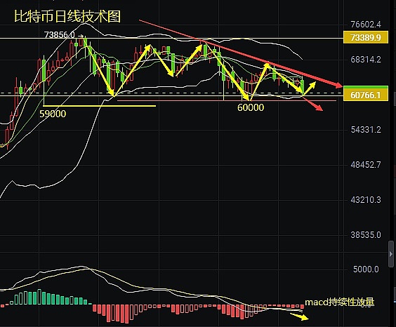 短期上方压力位:62000/6300 短期下方支撑位:60000/59000