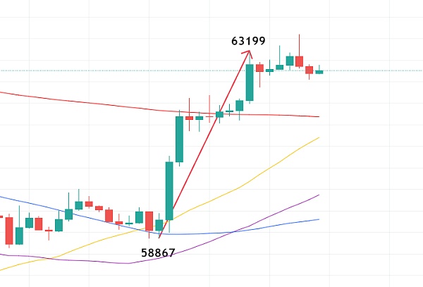 做多入场位参考:61800-62200区间均可多 防守500点 目标62850-63500