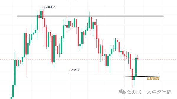 比特币的行情大趋势大周期还是维持之前不变的看法,就不啰嗦了。日线的大阳已经完成收复了30号1号的跌幅,既然行情再次回到6万上方,趋势单已经收获一部分,没有什么压力,可以边走边看。没有跟上的朋友短期可以在61500-60500的支撑区间去做参考,技术面也不过多的说了,还在恐慌没有行动的朋友,再次的去回顾之前的文章。比特币下一个看涨预期71800!