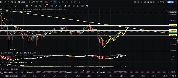 以太3150附近直接做多,突破3170附近压力,继续上看3235附近下降趋势线压力,止损3120!