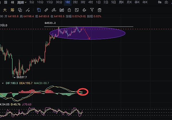 64500-6.5附近考虑分批开空,目标62500附近