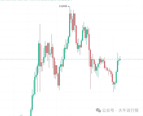 doge 一波急速反弹以后并没有出现对应回调,说明至少要向上走出肩顶肩部的行情,那也就是说最小的级别也是回到0.2以上,至于到那各级别后回不回落那样是后面的事了。