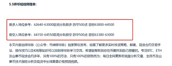 做空入场位参考:64400-64800区间分批做空 防守500点 目标63540-63200(轻仓)