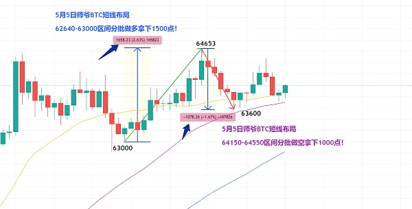 做多入场位参考:63100-63500区间分批做多 防守500点 目标64100-64600