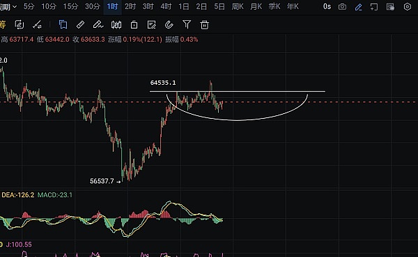 大饼。果不其然,回顾正常交易日有所活跃,周一屋漏偏逢连夜雨,昨日午盘试探走高,触高65500附近后一蹶不振,晚间更是阴跌不断失守6.3关口,昨日李隆强调的吃空思路也是一举修补此前失利,久违单边实乃妙哉。目前小时图来看,以6.5K上方作为上移起跌,BOLL结构空间有所打开,币价短期承压中轨下方有所修补,而上方6.6K位置也是李隆此前强调的重点分水岭,附图方面死叉之后有所粘合,短期下方留意6.2关口能否稳住、才能考虑博短多,今日主观操作上,李隆建议还是重点高空为主,进场切记做好分批风控计划。