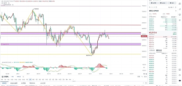 5月7号中午:多空博弈;下方多军防守位置关注61800附近