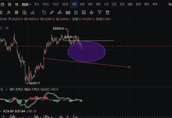 反弹63000-63500附近分批开空,目标61500-60000附近