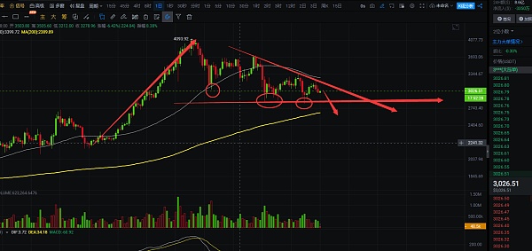 大饼以太日线以及短线都是下跌趋势,交易上注意控制仓位;