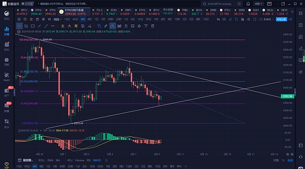 以太坊上个交易日白盘整体处于3000附近震荡运行,多次跌至2980附近获得支撑反弹,晚盘反弹3030一线压制回踩,凌晨美盘跌至2935附近才止住跌势反弹,现行情位于2990附近震荡。