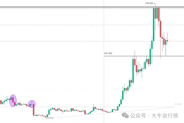 SOL从最低8美金涨到最高210美金,用了1年3个月左右,涨幅不可谓不大,而且是在整体的熊转牛的这一年。很多人认为牛市还没有来就涨了这么多,那就是是不是还会涨得更高?这种想法很危险,今年的行情已经分化,每个币种的走势完全不同,而且这个牛市与前几个牛市的走势也不一样,还想着会大涨追高风险很大。