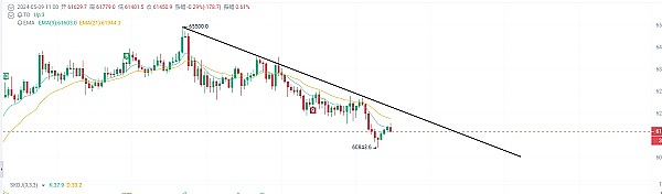 如果比特币未能突破 62000 美元的阻力位,那么可能会继续下跌,第一个主要支撑位是 60000 美元。