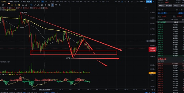 4小时线上看,以太也是走出回调,以太的下跌力度就比大饼强一点,到达短线目标区间后收下影线上来,大饼是还未到达区间,但大饼继续下跌以太也会去跟随,白盘以太依旧是关注下跌区间2970-2900,到达后关注2900收线情况,如果未能出现长下影线,那就有很大机会去破2817位置了,破了就看2600附近;白盘布局,昨日或者高位空单还有的可以继续持有,没有的,白盘推荐点位3020附近,目标一致,自行把握进场机会;短线交易,控制风险,盈亏自理;