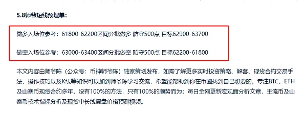 做空入场位参考:61600-62000区间分批做空 防守500点 目标60800-60300