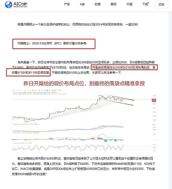 币圈院士:2024.5.10比特币(BTC)最新行情分析参考: