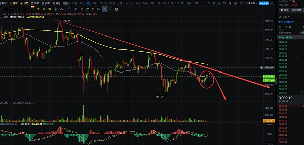 4小时线上看,以太的反弹相对于大饼来说还弱一点,反弹的力度并不强,前面的下跌趋势线也没有去打破,上方的压力依旧比较大,以太上方压力在3155附近,短线压力是3065附近,突破再看3155附近压力,反弹去突破3221位置的机会不大,上方有200日均线压力,交易上,关注3155到达后收针情况去做布局,破3221位置,空单就没有继续持有的必要了,目标看2970-2900区间,自行把握进场机会;短线交易,控制风险,盈亏自理;
