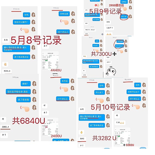 假期结束之后从6号-10号内部总共给出了九单姨太短线收360点以上,共收三万八千美刀以上 。 悦盈这里只有精确的点位,没有模棱两可的区间和附近之类的,喜欢悦盈的朋友可以点点关注。且看今日分享!!