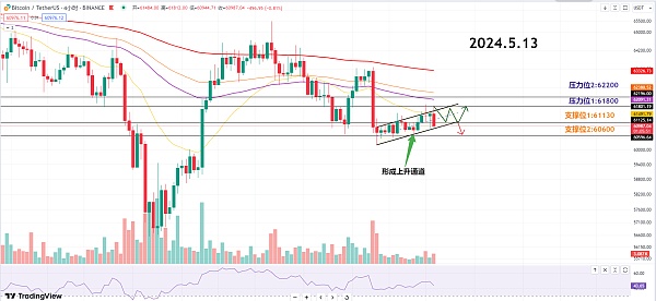 做多入场位参考:60900-61200区间分批做多 防守500点 目标61800-62200