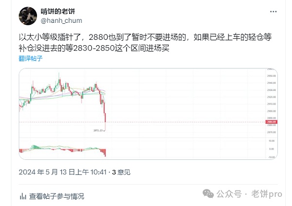 以太的走势还是偏弱一些,早上一波下跌直接近80刀,早上老兵是在2880-2860 分批入手的哆单,目前小级别看能不能止跌收针