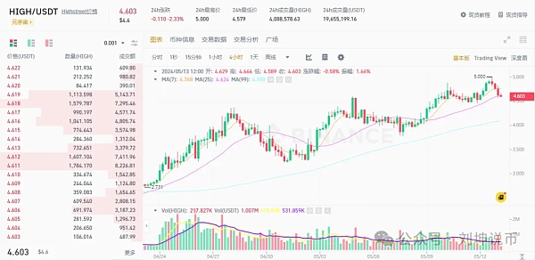 目前,HIGH代币的市值约为2.303亿美元,全球排名第258位。尽管当前交易价格为4.595美元,较历史高点40.26美元下跌了88.65%,但在过去四周内,其大幅上涨已超过100%。随着市场看涨情绪的增强,预计HIGH代币在五月有望实现大幅上涨,为投资者带来丰厚的回报。