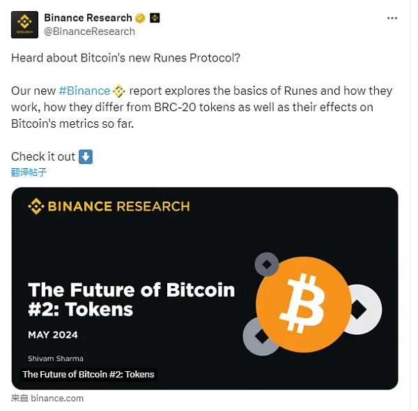 2024年5月8日, Binance Research 发布了对 Runes 的报告,报告介绍了 Runes 的相关机制,及对整个BTC生态的影响。