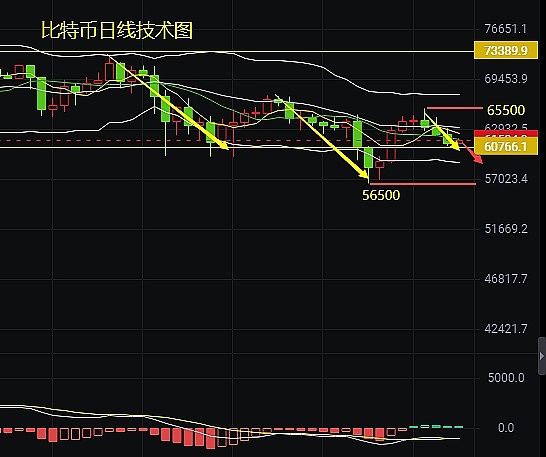 回落在60000-60500区域附近短多,目标61200-61500区域;