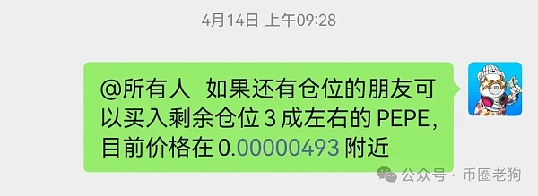 目前现货会员群持续开放中,上个月让买的PEPE目前价格已经翻倍,牛市周期机会多多,会员群在群费期间如果出现亏损,会员时间无限延期直到盈利为止