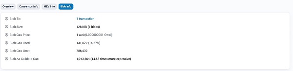 需要补充的是当前TARGET_BLOB_GAS_PER_BLOCK和MAX_BLOB_GAS_PER_BLOCK的设置为主网带来了一个限制,即每个区块的平均处理3 个 blob (0.375 MB) 的目标和最多6个blob (0.75 MB)的限制。这些初始限制旨在最大限度地减少该 EIP 对网络造成的压力,并且随着网络在较大区块下展现出可靠性,预计会在未来的升级中增加。