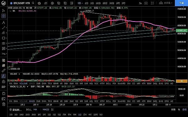 大饼昨日整体呈回落走势,最低跌至61150一线支撑,最高反弹至62300附近受阻再次回落,恭喜跟上思路的朋友多单获利一千点,目前币价在61740附近运行,四小时级别空头止跌反弹,上方关注62000附近压制,macd仍是空头运行双线死叉,目前来看需要关注反弹力度,日线级别k线收阴吞没涨幅,走势来看还是偏弱,重点关注晚间cpi公布,日内需要防范行情变盘,目前区间在60000-63000,若能站稳63000势必会引发市场上涨,反之会再次测试ma120支撑,低位多单继续持有,上方压制62500-63200,下方支撑61000-60000