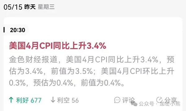 美国4月未经季调的CPI年率录得3.4%,略低于前一个月的3.5%,与市场预期相符。