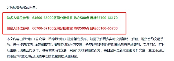 做多入场位参考:64600-65000区间分批做多 防守500点 目标65700-66700