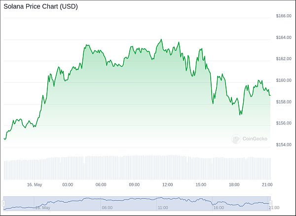 截至目前,SOL 的价格为 161.06 美元,较峰值低 38%。在盘中调整中,近期资金流已推动其价格突破 164 美元。