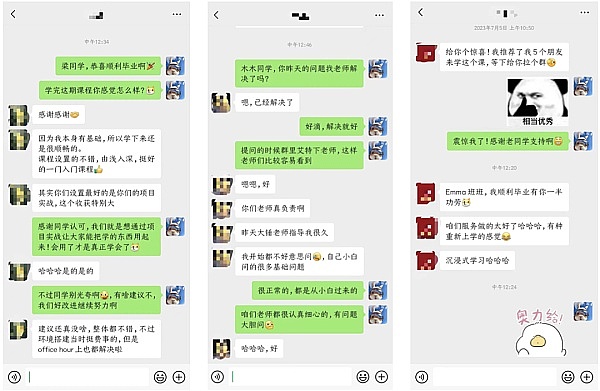 入门课设置贯穿课前、课中、课后的学习支持,课前提供导读、学习资料、环境配置;课中配备视频学习、课程 PPT、源代码、参考资料等内容;课后开设每周一次的直播答疑和每日班级群答疑活动,全周期陪伴和辅导你的学习旅程。