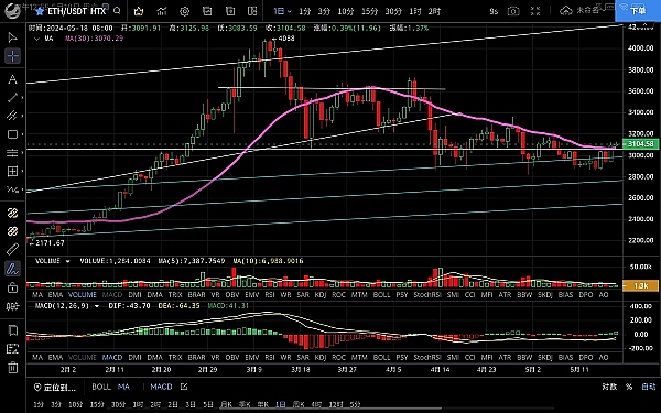 以太坊昨日横盘调整后,午间发力走出强势拉升,最高触及3120附近受阻,恭喜跟上思路的朋友多单获利一百余点,目前币价在3110附近运行,四小时级别k线虽回落收阴但没有延续,受ma200支撑行情再次反弹,可见多头走势较强,macd逐步放量双线金叉向上,盘面来看随时有冲破前高的迹象,日线级别行情企稳底部逐渐抬高,如思路一致以太坊不负众望收大阳线,目前来看还有延续,关注3200附近,多单继续持有,还是那句话要始终相信以太坊,上方压制3150-3200,下方支撑3070-3050
