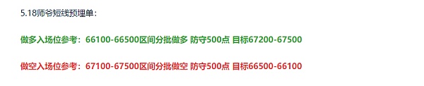做多入场位参考:66400-66800区间分批做多 防守500点 目标67500-68000