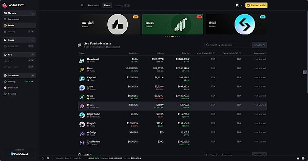目前,Whales Market提供两种细分产品,分别为 Pre Market 和 Point Market。