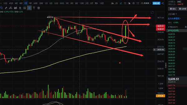 日线图上看,以太从昨日这根大阳线到来之前,其实整体还是处于下跌通道中在运行,昨晚直接一根阳线走出突破,这波拉升的力度比大饼强,直接追上大饼的脚步,不过以太相距短线高点4093还差一点,上方还有3820附近作为压力,这波拉升也是到达短线高点3730附近后停下脚步,短线也是需要走一波回调后,再关注到达3820附近的突破情况,以太白盘预计回调点位在3510附近,到达后再看能否走出更深的下跌,如3510附近跌破,那就是3260-3150了,白盘推荐点位3680附近空,破短线高点就放弃空单,然后关注3820附近收线再做布局,目标先看3510附近,然后再看破位情况,自行把握进场机会;短线交易,控制风险,盈亏自理;