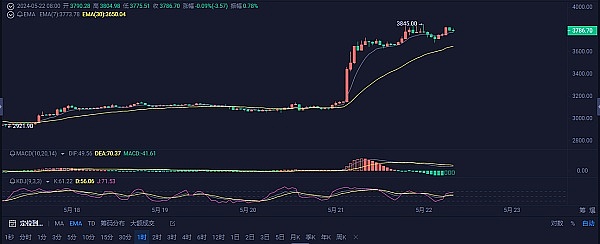 5.22以太坊(ETH)具体操作策略:回撤 3750 区域多,意外回撤 3730 补一次,止损 3700 一线位置,目标关注3806-3820;反弹 3820位置空单,意外冲高 3850补仓,止损3865一线,目标关注3772-3760。(此建议适用于今晚8点半之前,后续每盘行情依据实际变化而定)