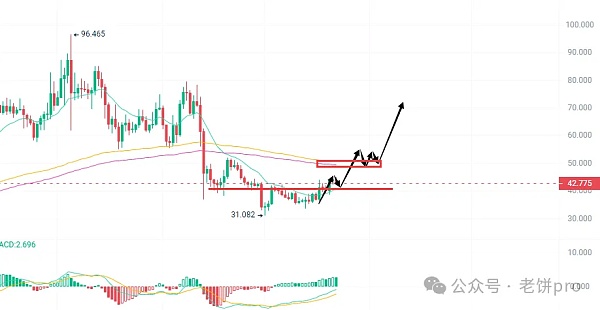 1:ordi 现在价格:42.77u 日线级别这波底部形态已经走出来了,也是铭文板块共识最高的创世铭文 大盘稳健或者上升的话 随时会有一波加速上涨行情,下方留一个补仓位 放在 35下方 上方目标70u