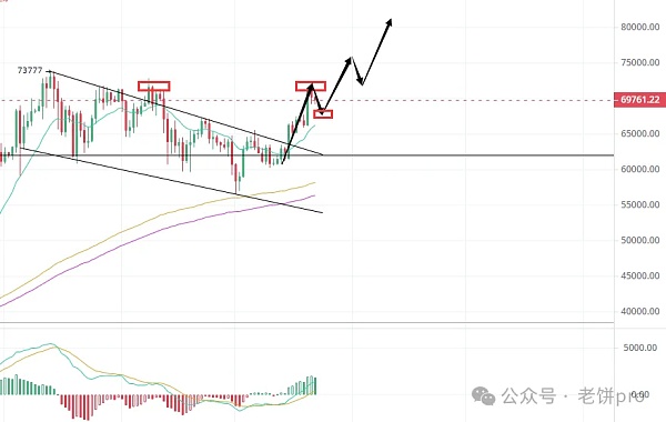 目前日线突破小级别回踩,高位震荡 都在等这两天的etf现货审批结果,如果这次通过了 那么新高这个位置应该会直接上去了