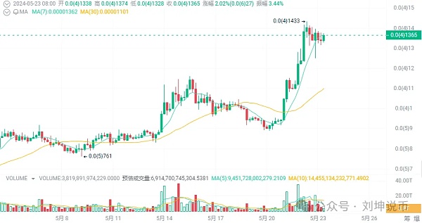 所以接下来应该重点关注的meme币赛道。美国人能玩的梗,或者已经很多美国人接受并持有的币。PEPE、PEOPLE 都满足这两个条件。