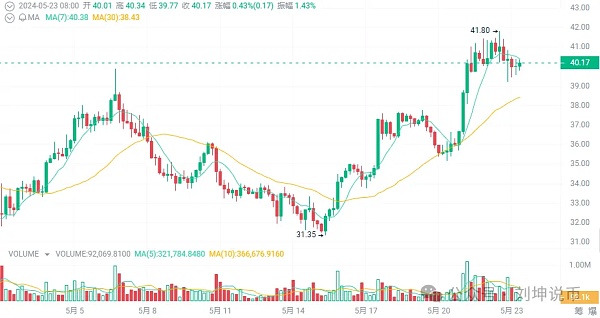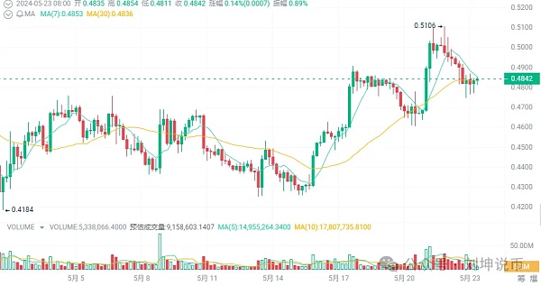 当前一些强势的山寨币已经开始走出独立行情,PEPE仍在上涨,但需注意不要追高这些涨幅过大的币,控制风险永远是首要任务。多关注那些还在底部震荡,拉盘幅度较小,底部震荡时间长的币种。这些币种一旦之前有过爆拉的走势,在这一轮山寨轮动中,肯定也不会甘于寂寞。当山寨币回踩时,就是买入的好时机,不要犹豫,大胆上车,持稳持住,抓住这波轮动行情。