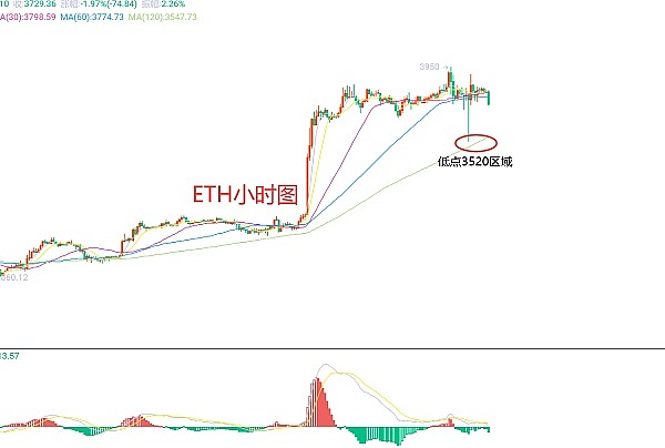 5月24日以太坊(ETH)合约技术面分析:今日方面,大周期日线级别昨日报收小阳线,K线形态连阳单阴,价格在均线上方,附图指标金叉运行,在大趋势上还是明显比较强势的,那么我们的交易思路就是要顺势去做了,跟大饼不同,所以大家不要搞混淆了,这一点一定要注意;短周期小时图昨日欧盘下跌美盘延续但向下插针破位后快速反弹,当前二次承压,K线形态连阴,价格在均线下方,附图指标死叉运行,日内大概率也是有回撤的,但由于大周期的强势,所以下跌的空间不能看大了,因此今日ETH短线合约交易策略:现价3730区域直接空,止损3759区域,目标看3680-3650区域