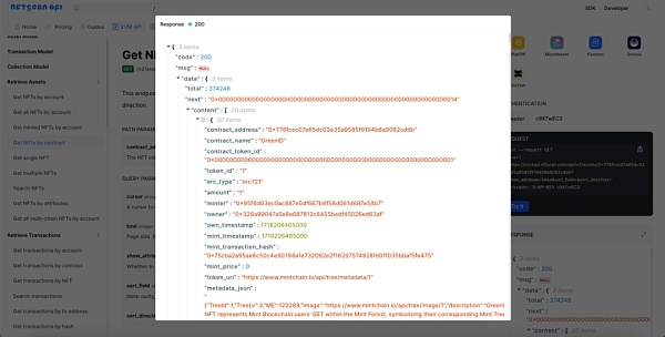 ” 对 Mint Blockchain 上的 GreenID 该项目的详情数据进行调取,地址为