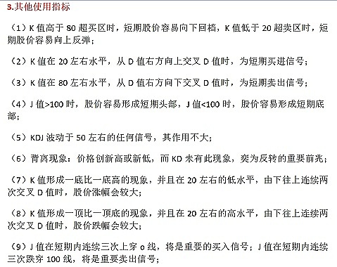(3)KDJ黄金交叉发生在20以下是最佳买点;如果KDJ死叉发生在80以上是最佳卖点。