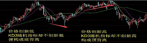 (1)在KDJ指标中,当市场价格创出新高,但对应的KDJ值却未能创出新高值,这就构成了顶背离,说明上升趋势已经有发生反转的征兆;