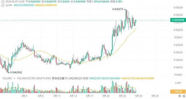 BONK是一款基于Solana的模因币,在流行的Solana meme代币中处于领先地位,自今年年初以来获得了显著的关注。目前,BONK的价格为0.000034美元,在过去24小时内下跌了7%,这是一个很理想的进场机会。